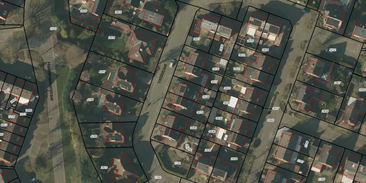 Gebruik de zoekbalk of klik op een perceel voor informatie over de adressen binnen dit perceel.
