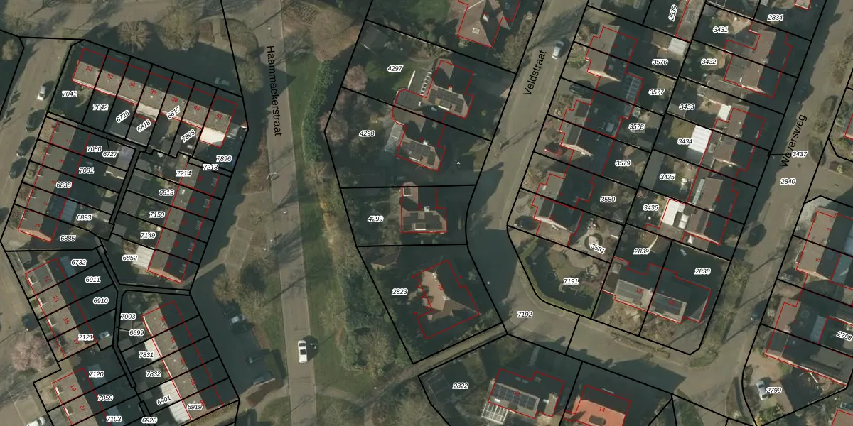 Veldstraat 8-A is gelegen op kadastraal perceel HDN01G4299. Deze kadastrale aanduiding is uniek en wordt gebruikt door het Kadaster om eigendomsrechten en andere zakelijke rechten vast te leggen. Het perceel maakt onderdeel uit van de kadastrale gemeente Helden.