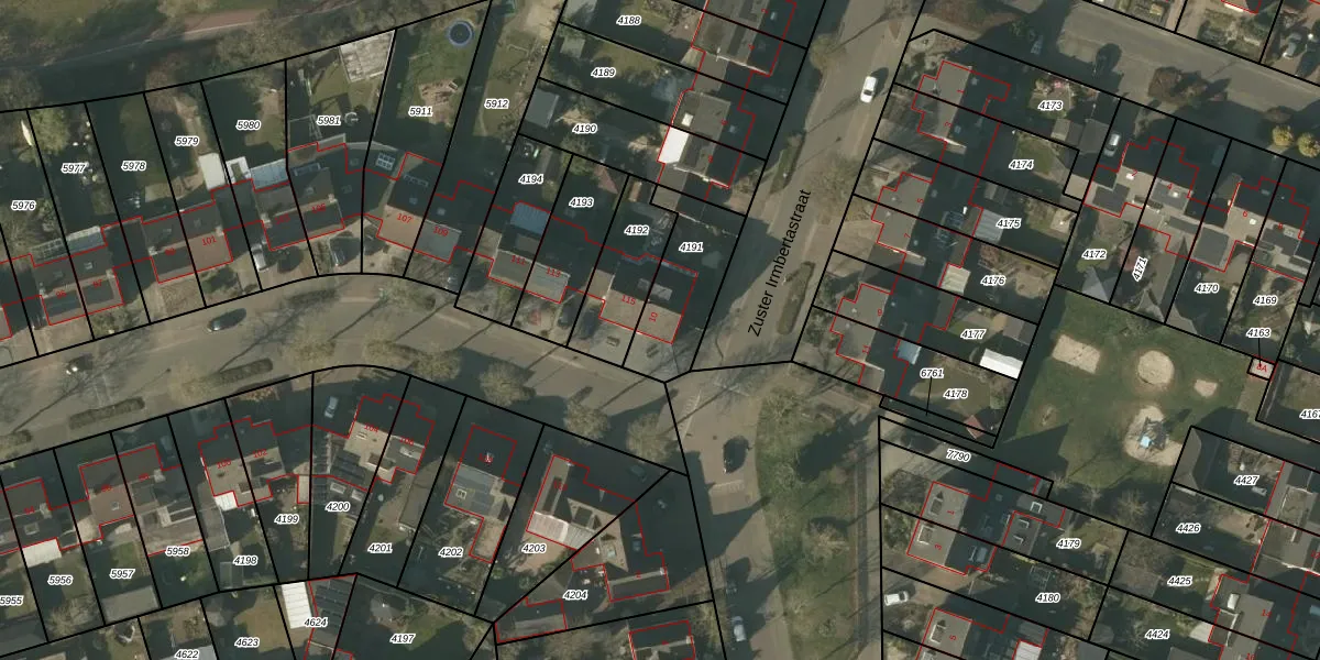 Zuster Irmbertastraat 10 is gelegen op kadastraal perceel HDN01G4191. Deze kadastrale aanduiding is uniek en wordt gebruikt door het Kadaster om eigendomsrechten en andere zakelijke rechten vast te leggen. Het perceel maakt onderdeel uit van de kadastrale gemeente Helden.