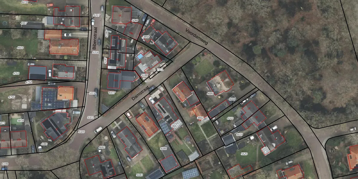 Het perceel waarop Damstraat 8 staat heeft een oppervlakte van 645 m². Dit is een groot perceel. De perceeloppervlakte wordt geregistreerd door het Kadaster. Gedetailleerde informatie over de maten van dit perceel kunt u vinden in het rapport Kadastrale kaart met maatvoering van Damstraat 8.