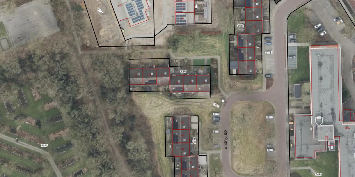 de Kupen 18 is gelegen op kadastraal perceel HLD01G3887. Deze kadastrale aanduiding is uniek en wordt gebruikt door het Kadaster om eigendomsrechten en andere zakelijke rechten vast te leggen. Het perceel maakt onderdeel uit van de kadastrale gemeente Hellendoorn.
