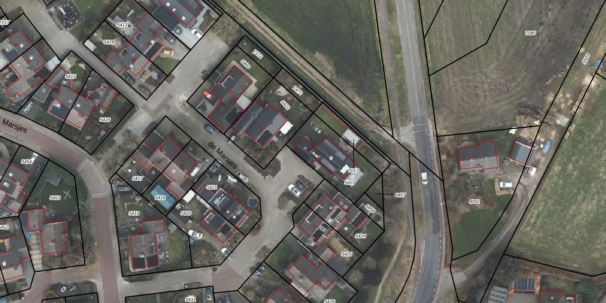 Het perceel waarop de Marsjes 18 staat heeft een oppervlakte van 418 m². Dit is een groot perceel. De perceeloppervlakte wordt geregistreerd door het Kadaster. Gedetailleerde informatie over de maten van dit perceel kunt u vinden in het rapport Kadastrale kaart met maatvoering van de Marsjes 18.