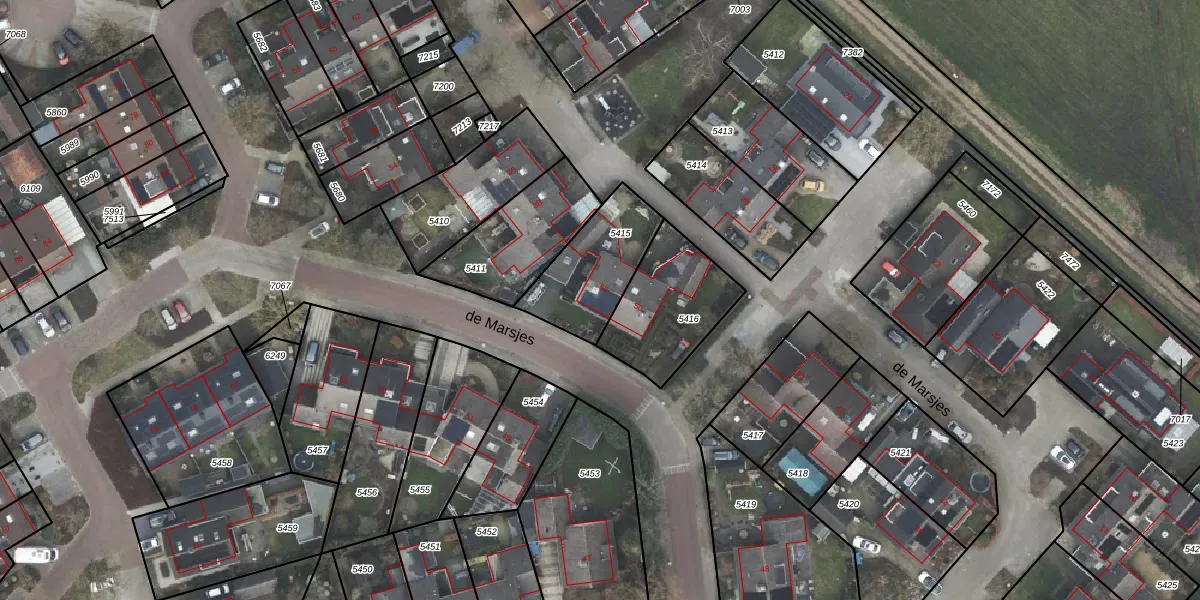 Gebruik de zoekbalk of klik op een perceel voor informatie over de adressen binnen dit perceel.