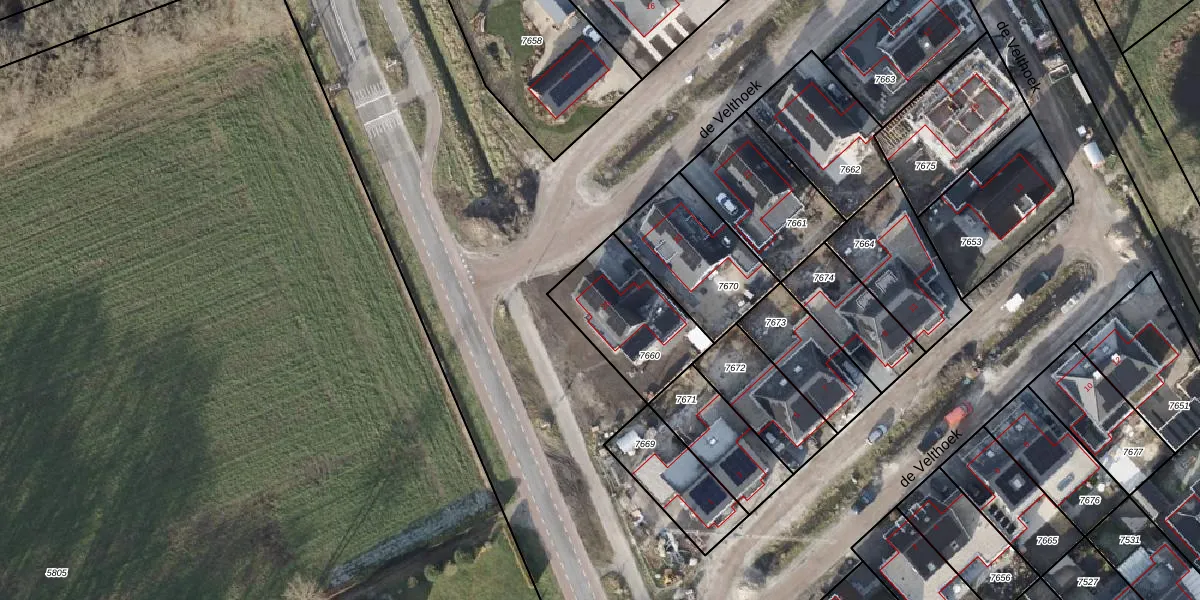 de Velthoek 25 is gelegen op kadastraal perceel HLD01H7660. Deze kadastrale aanduiding is uniek en wordt gebruikt door het Kadaster om eigendomsrechten en andere zakelijke rechten vast te leggen. Het perceel maakt onderdeel uit van de kadastrale gemeente Hellendoorn.