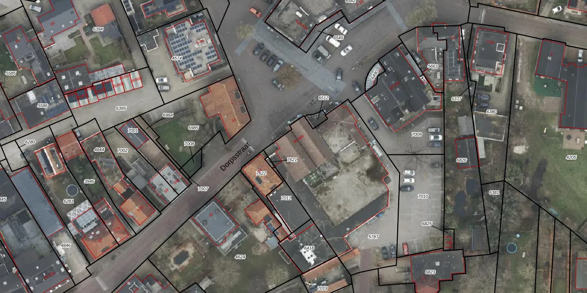 Het perceel waarop Dorpsstraat 46-b staat heeft een oppervlakte van 1645 m². Dit is een zeer groot perceel. De perceeloppervlakte wordt geregistreerd door het Kadaster. Gedetailleerde informatie over de maten van dit perceel kunt u vinden in het rapport Kadastrale kaart met maatvoering van Dorpsstraat 46-b.