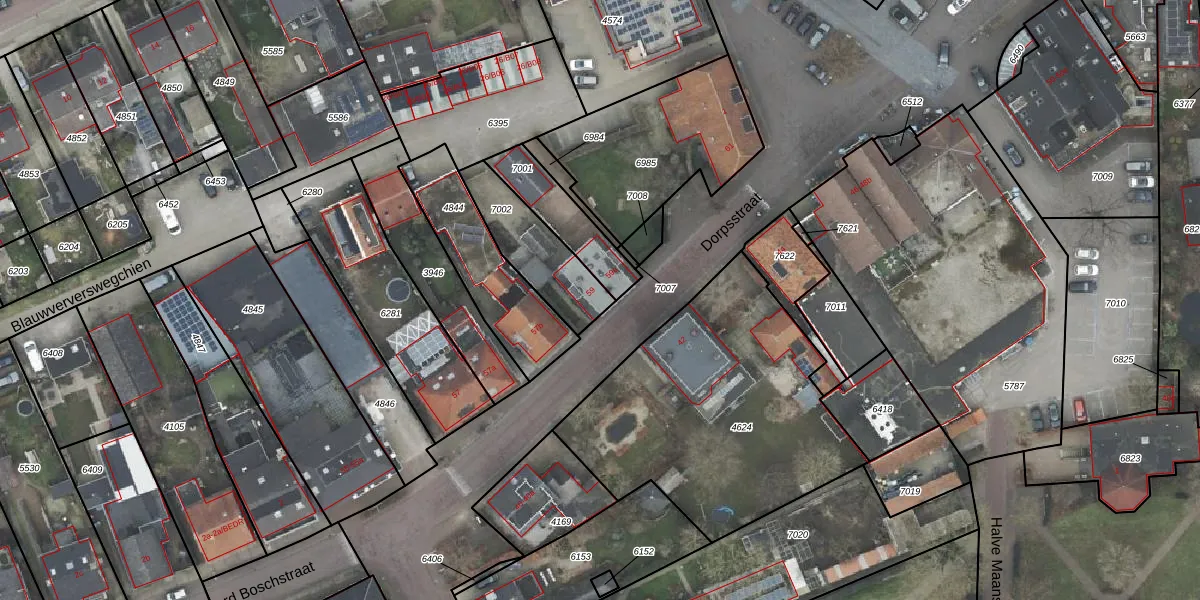 Gebruik de zoekbalk of klik op een perceel voor informatie over de adressen binnen dit perceel.