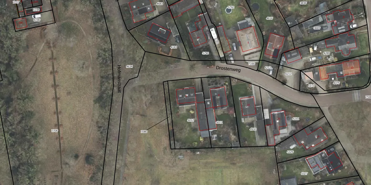 Drostenweg 6 is gelegen op kadastraal perceel HLD01H5012. Deze kadastrale aanduiding is uniek en wordt gebruikt door het Kadaster om eigendomsrechten en andere zakelijke rechten vast te leggen. Het perceel maakt onderdeel uit van de kadastrale gemeente Hellendoorn.