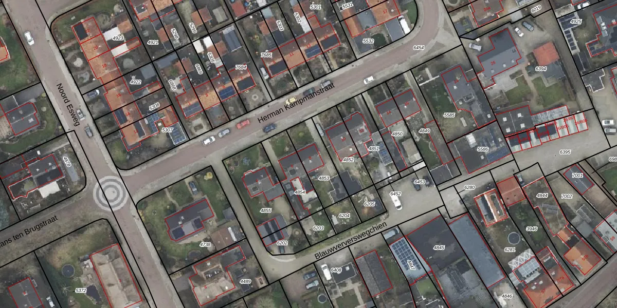 Gebruik de zoekbalk of klik op een perceel voor informatie over de adressen binnen dit perceel.