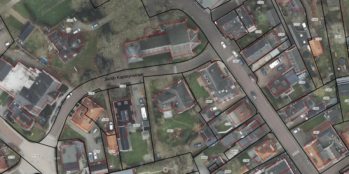 Gebruik de zoekbalk of klik op een perceel voor informatie over de adressen binnen dit perceel.