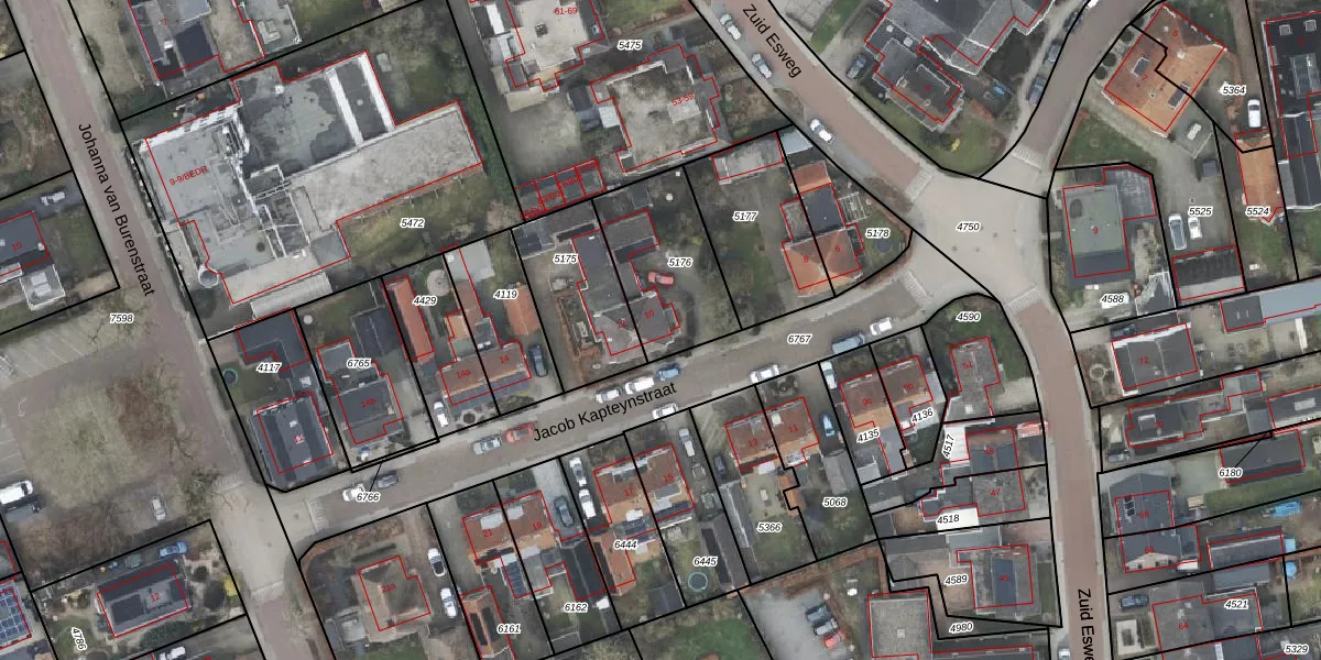 Het perceel waarop Jacob Kapteynstraat 10 staat heeft een oppervlakte van 397 m². Dit is een groot perceel. De perceeloppervlakte wordt geregistreerd door het Kadaster. Gedetailleerde informatie over de maten van dit perceel kunt u vinden in het rapport Kadastrale kaart met maatvoering van Jacob Kapteynstraat 10.