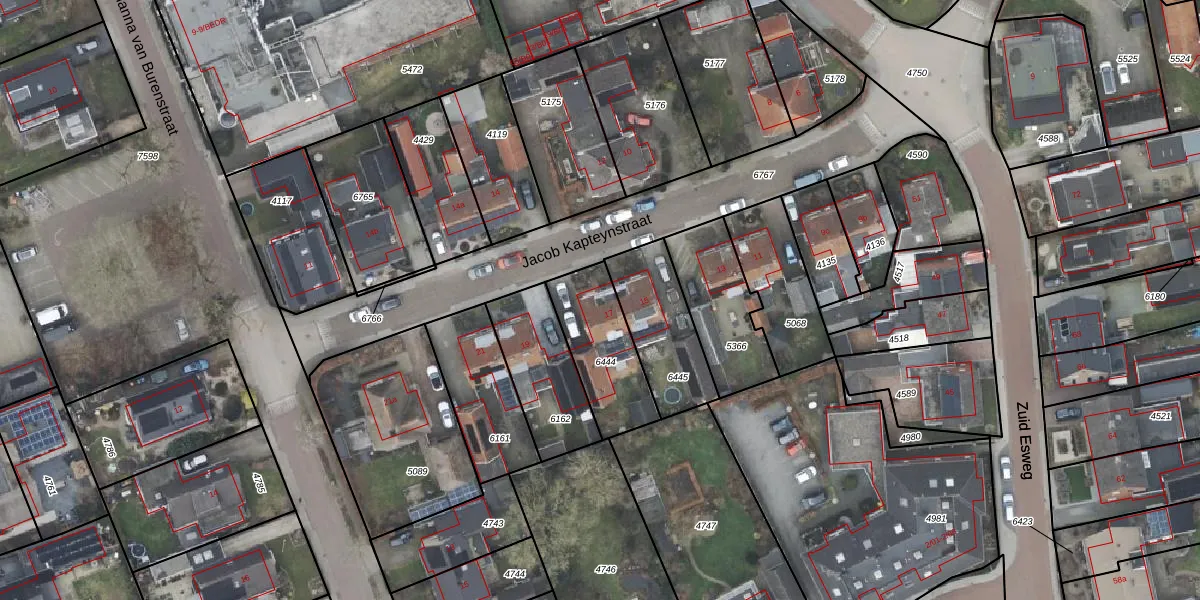 Gebruik de zoekbalk of klik op een perceel voor informatie over de adressen binnen dit perceel.