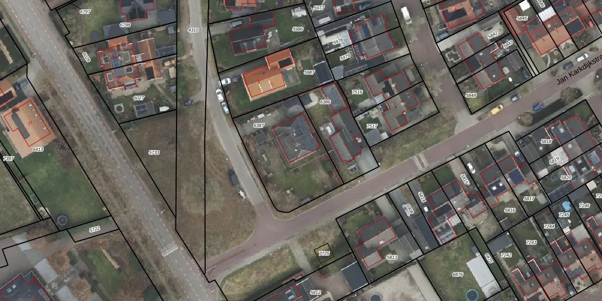 Het perceel waarop Jan Karkdijkstraat 1 staat heeft een oppervlakte van 814 m². Dit is een groot perceel. De perceeloppervlakte wordt geregistreerd door het Kadaster. Gedetailleerde informatie over de maten van dit perceel kunt u vinden in het rapport Kadastrale kaart met maatvoering van Jan Karkdijkstraat 1.