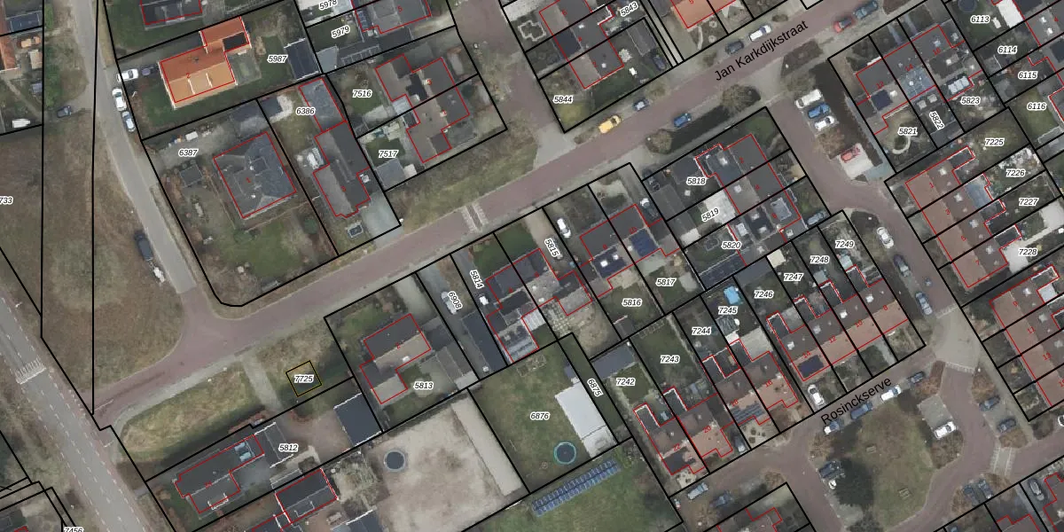 Gebruik de zoekbalk of klik op een perceel voor informatie over de adressen binnen dit perceel.