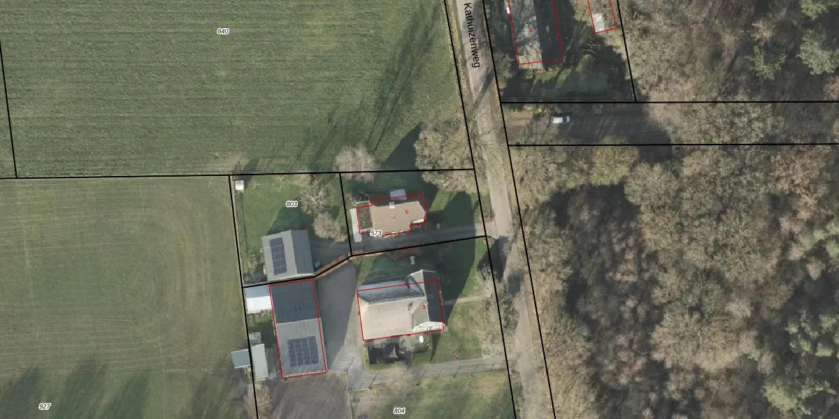 Kathuizenweg 5 is gelegen op kadastraal perceel HLD01R573. Deze kadastrale aanduiding is uniek en wordt gebruikt door het Kadaster om eigendomsrechten en andere zakelijke rechten vast te leggen. Het perceel maakt onderdeel uit van de kadastrale gemeente Hellendoorn.