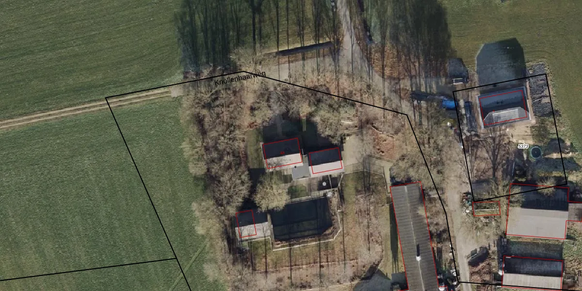 Het perceel waarop Knollenhaarweg 4-a staat heeft een oppervlakte van 1,3 ha. Dit is een zeer groot perceel. De perceeloppervlakte wordt geregistreerd door het Kadaster. Gedetailleerde informatie over de maten van dit perceel kunt u vinden in het rapport Kadastrale kaart met maatvoering van Knollenhaarweg 4-a.