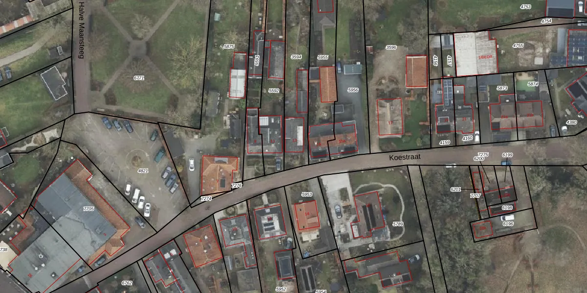 Het perceel waarop Koestraat 13 staat heeft een oppervlakte van 655 m². Dit is een groot perceel. De perceeloppervlakte wordt geregistreerd door het Kadaster. Gedetailleerde informatie over de maten van dit perceel kunt u vinden in het rapport Kadastrale kaart met maatvoering van Koestraat 13.