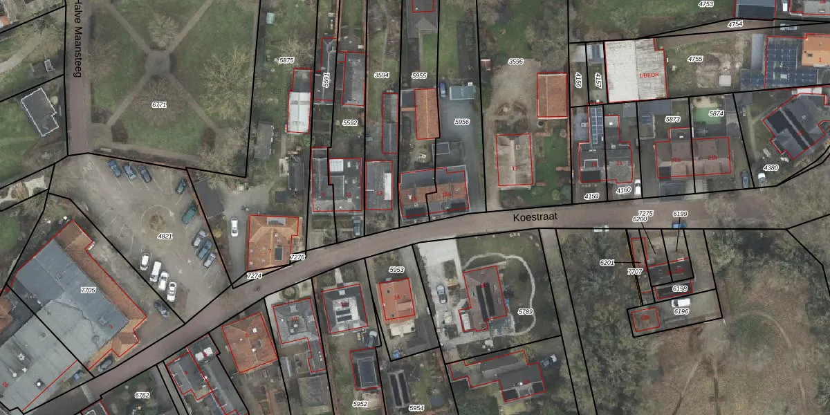 Gebruik de zoekbalk of klik op een perceel voor informatie over de adressen binnen dit perceel.
