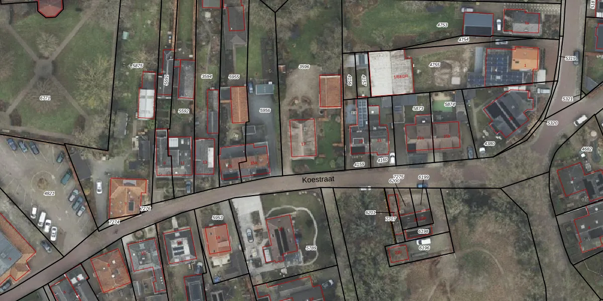 Het perceel waarop Koestraat 17 staat heeft een oppervlakte van 1390 m². Dit is een zeer groot perceel. De perceeloppervlakte wordt geregistreerd door het Kadaster. Gedetailleerde informatie over de maten van dit perceel kunt u vinden in het rapport Kadastrale kaart met maatvoering van Koestraat 17.