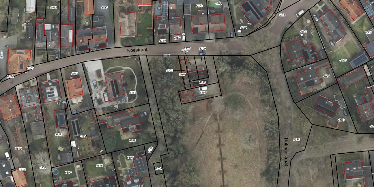 Koestraat 22-b is gelegen op kadastraal perceel HLD01H6196. Deze kadastrale aanduiding is uniek en wordt gebruikt door het Kadaster om eigendomsrechten en andere zakelijke rechten vast te leggen. Het perceel maakt onderdeel uit van de kadastrale gemeente Hellendoorn.