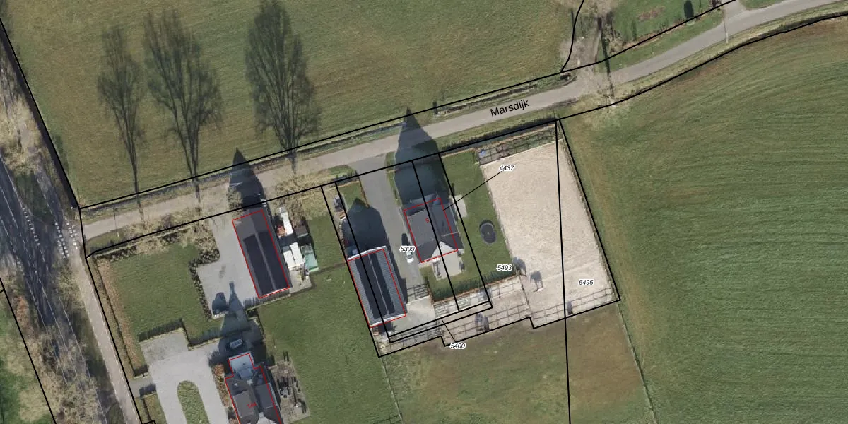 Het perceel waarop Marsdijk 9 staat heeft een oppervlakte van 681 m². Dit is een groot perceel. De perceeloppervlakte wordt geregistreerd door het Kadaster. Gedetailleerde informatie over de maten van dit perceel kunt u vinden in het rapport Kadastrale kaart met maatvoering van Marsdijk 9.