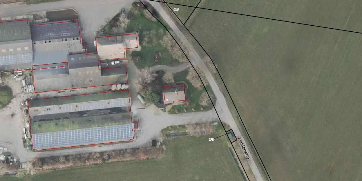 Het perceel waarop Middenweg 3 staat heeft een oppervlakte van 11,2 ha. Dit is een zeer groot perceel. De perceeloppervlakte wordt geregistreerd door het Kadaster. Gedetailleerde informatie over de maten van dit perceel kunt u vinden in het rapport Kadastrale kaart met maatvoering van Middenweg 3.