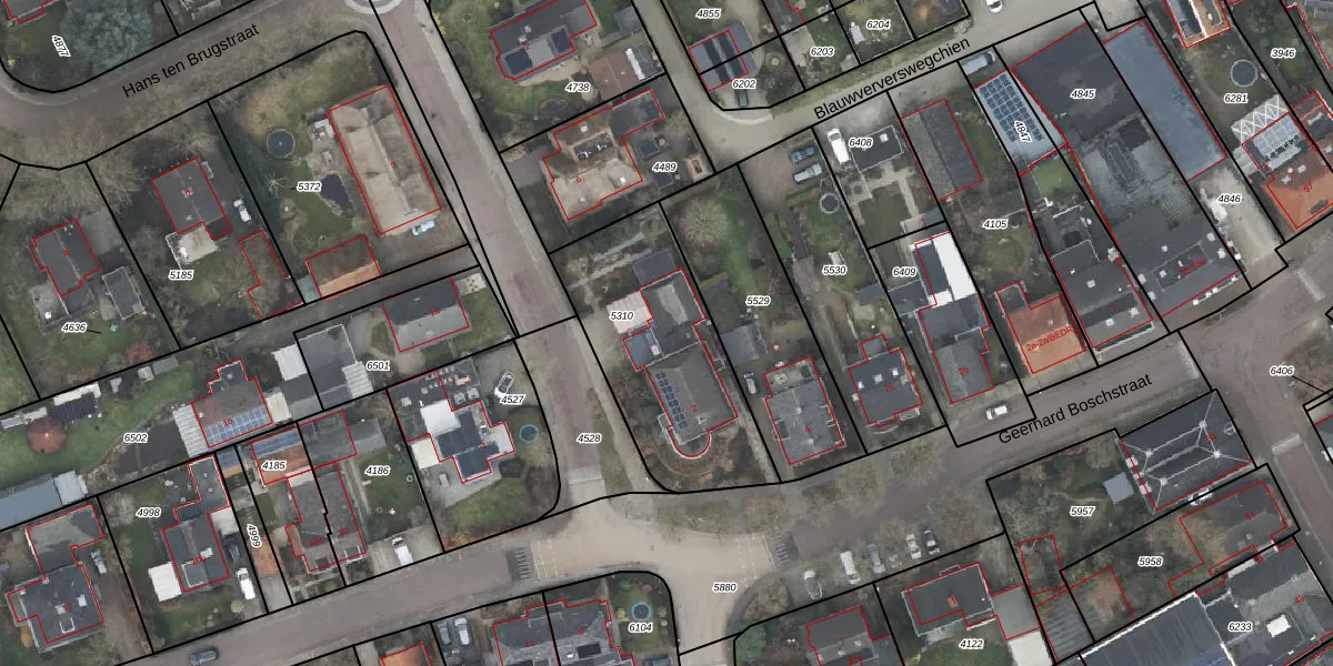 Gebruik de zoekbalk of klik op een perceel voor informatie over de adressen binnen dit perceel.