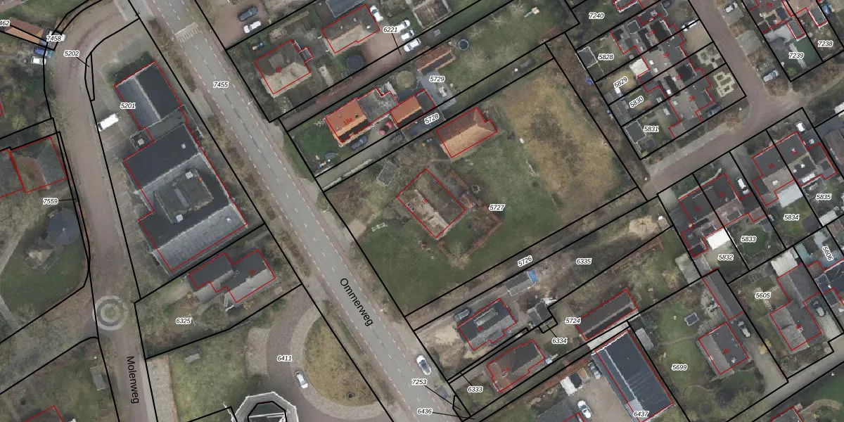 Het perceel waarop Ommerweg 18 staat heeft een oppervlakte van 2270 m². Dit is een zeer groot perceel. De perceeloppervlakte wordt geregistreerd door het Kadaster. Gedetailleerde informatie over de maten van dit perceel kunt u vinden in het rapport Kadastrale kaart met maatvoering van Ommerweg 18.