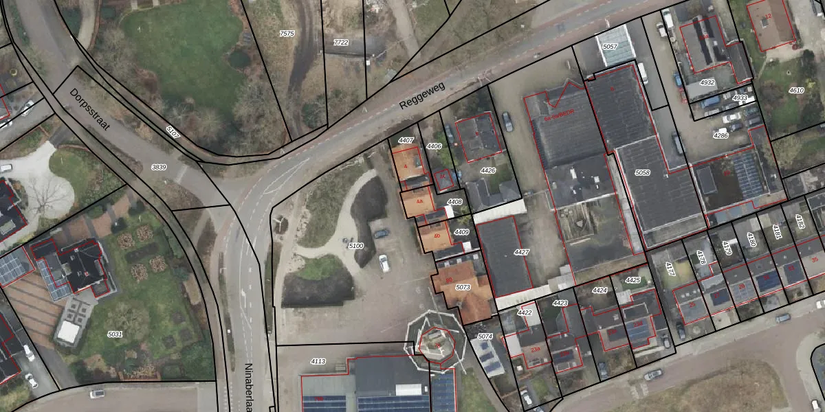 Gebruik de zoekbalk of klik op een perceel voor informatie over de adressen binnen dit perceel.