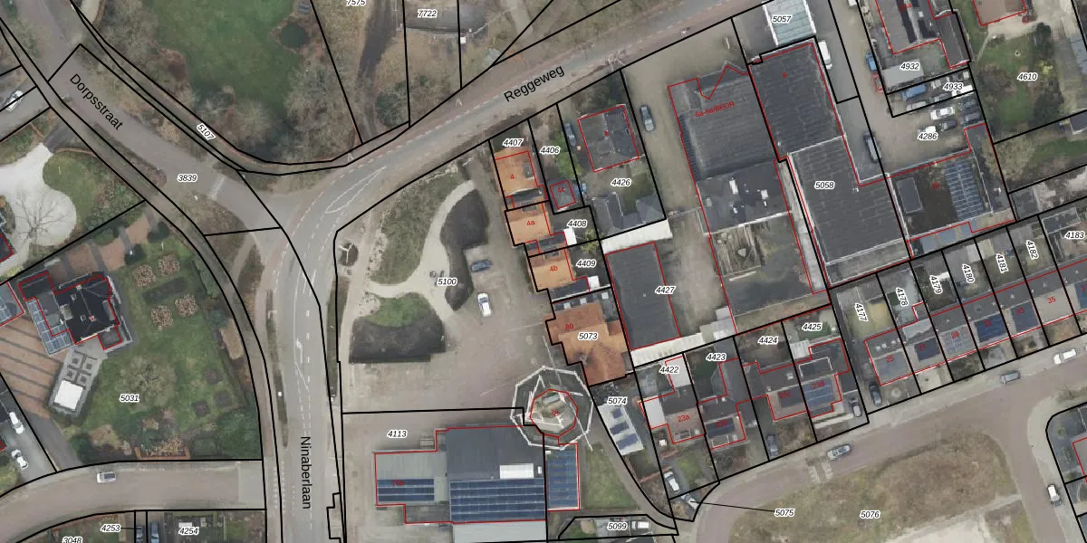 Reggeweg 4-b is gelegen op kadastraal perceel HLD01G4409. Deze kadastrale aanduiding is uniek en wordt gebruikt door het Kadaster om eigendomsrechten en andere zakelijke rechten vast te leggen. Het perceel maakt onderdeel uit van de kadastrale gemeente Hellendoorn.