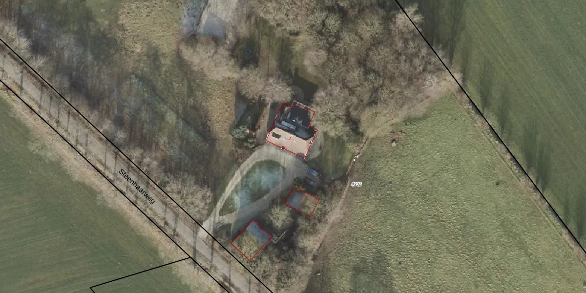 Het perceel waarop Steenhaarweg 2 staat heeft een oppervlakte van 1,9 ha. Dit is een zeer groot perceel. De perceeloppervlakte wordt geregistreerd door het Kadaster. Gedetailleerde informatie over de maten van dit perceel kunt u vinden in het rapport Kadastrale kaart met maatvoering van Steenhaarweg 2.