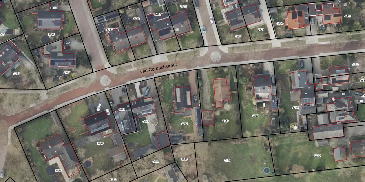 Het perceel waarop van Corbachstraat 7 staat heeft een oppervlakte van 837 m². Dit is een groot perceel. De perceeloppervlakte wordt geregistreerd door het Kadaster. Gedetailleerde informatie over de maten van dit perceel kunt u vinden in het rapport Kadastrale kaart met maatvoering van van Corbachstraat 7.