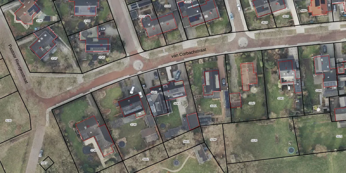 Het perceel waarop van Corbachstraat 9 staat heeft een oppervlakte van 755 m². Dit is een groot perceel. De perceeloppervlakte wordt geregistreerd door het Kadaster. Gedetailleerde informatie over de maten van dit perceel kunt u vinden in het rapport Kadastrale kaart met maatvoering van van Corbachstraat 9.