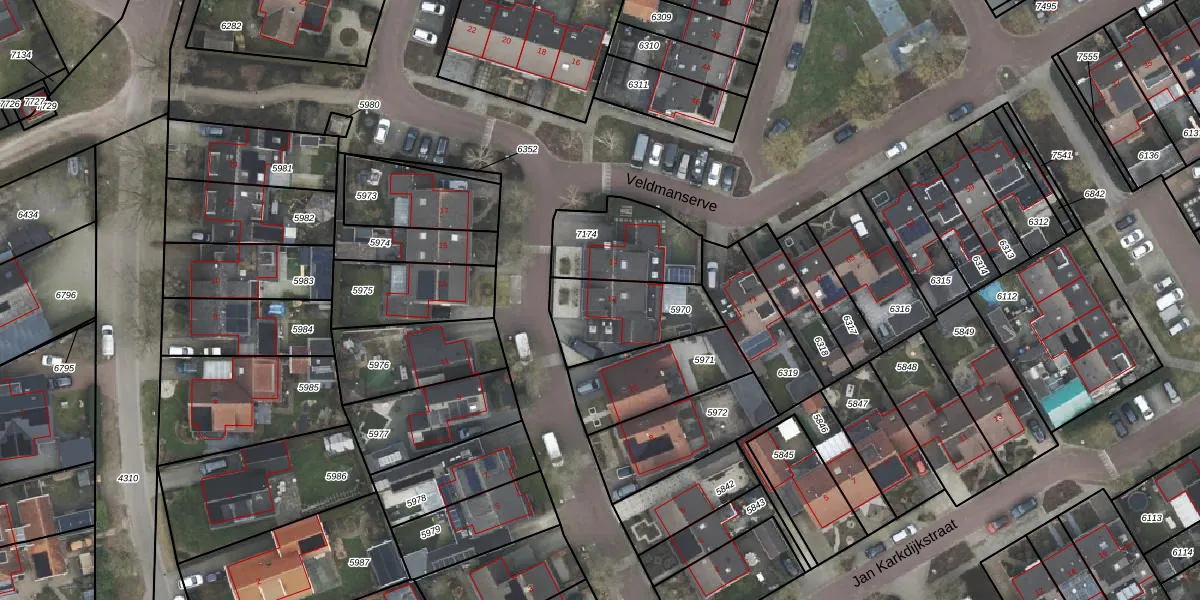 Het perceel waarop Veldmanserve 12 staat heeft een oppervlakte van 300 m². Dit is een groot perceel. De perceeloppervlakte wordt geregistreerd door het Kadaster. Gedetailleerde informatie over de maten van dit perceel kunt u vinden in het rapport Kadastrale kaart met maatvoering van Veldmanserve 12.