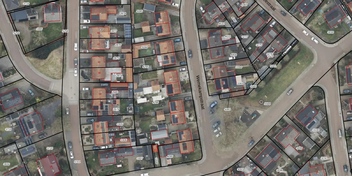 Het perceel waarop Wemekampstraat 16 staat heeft een oppervlakte van 1429 m². Dit is een zeer groot perceel. De perceeloppervlakte wordt geregistreerd door het Kadaster. Gedetailleerde informatie over de maten van dit perceel kunt u vinden in het rapport Kadastrale kaart met maatvoering van Wemekampstraat 16.