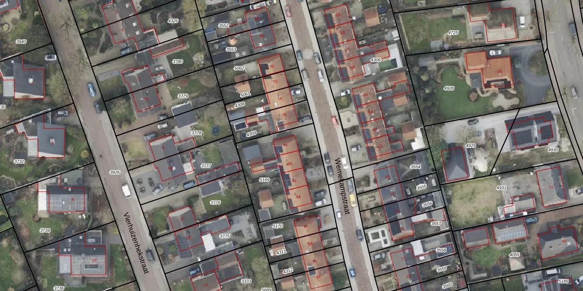 Het perceel waarop Wemekampstraat 78 staat heeft een oppervlakte van 777 m². Dit is een groot perceel. De perceeloppervlakte wordt geregistreerd door het Kadaster. Gedetailleerde informatie over de maten van dit perceel kunt u vinden in het rapport Kadastrale kaart met maatvoering van Wemekampstraat 78.