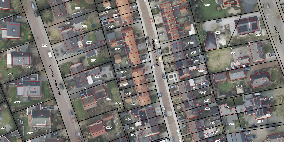Het perceel waarop Wemekampstraat 86 staat heeft een oppervlakte van 215 m². Dit is een middelgroot perceel. De perceeloppervlakte wordt geregistreerd door het Kadaster. Gedetailleerde informatie over de maten van dit perceel kunt u vinden in het rapport Kadastrale kaart met maatvoering van Wemekampstraat 86.