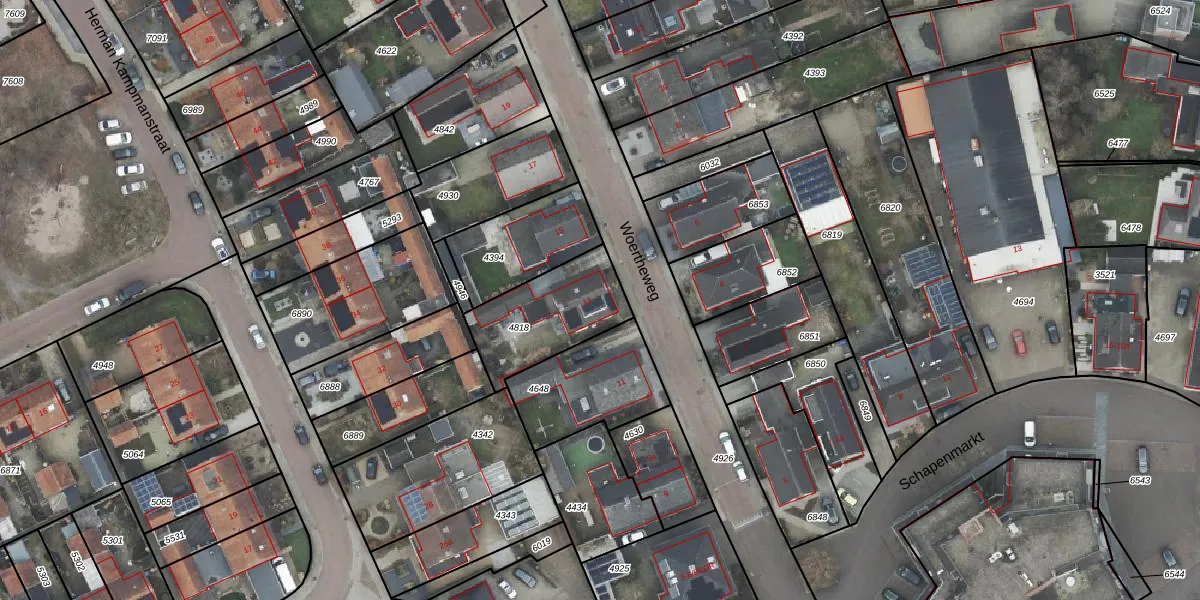 Gebruik de zoekbalk of klik op een perceel voor informatie over de adressen binnen dit perceel.