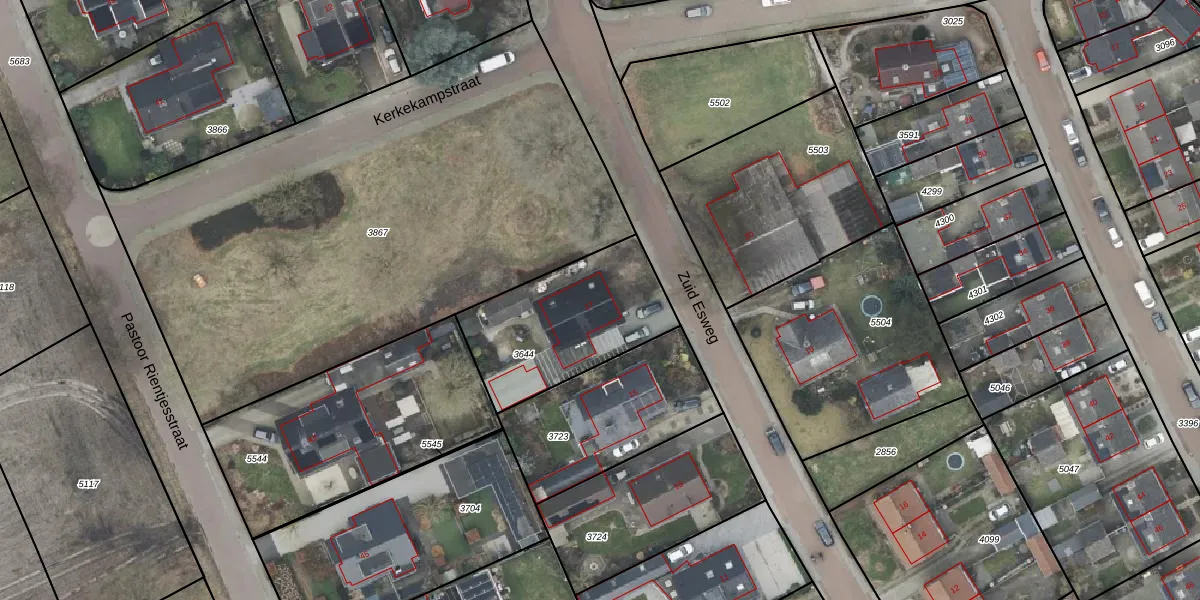 Gebruik de zoekbalk of klik op een perceel voor informatie over de adressen binnen dit perceel.