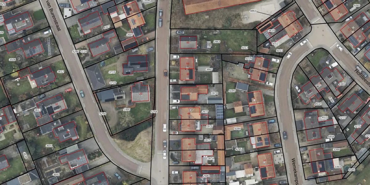 Gebruik de zoekbalk of klik op een perceel voor informatie over de adressen binnen dit perceel.