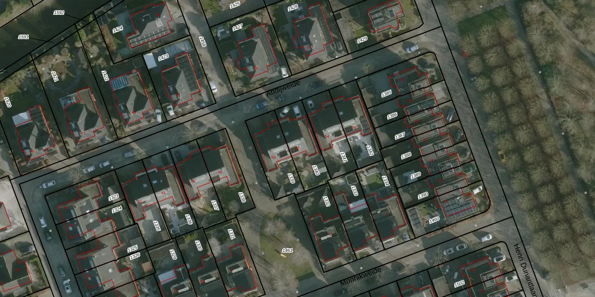 Het perceel waarop Abdijweide 52 staat heeft een oppervlakte van 285 m². Dit is een middelgroot perceel. De perceeloppervlakte wordt geregistreerd door het Kadaster. Gedetailleerde informatie over de maten van dit perceel kunt u vinden in het rapport Kadastrale kaart met maatvoering van Abdijweide 52.