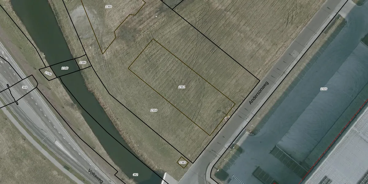Andersonweg 2-03 is gelegen op kadastraal perceel HLV01H2361. Deze kadastrale aanduiding is uniek en wordt gebruikt door het Kadaster om eigendomsrechten en andere zakelijke rechten vast te leggen. Het perceel maakt onderdeel uit van de kadastrale gemeente Hellevoetsluis.