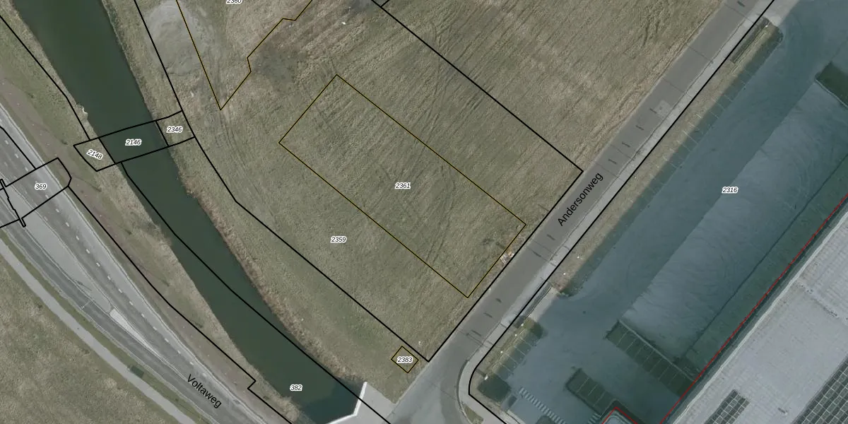 Andersonweg 2-01 is gelegen op kadastraal perceel HLV01H2361. Deze kadastrale aanduiding is uniek en wordt gebruikt door het Kadaster om eigendomsrechten en andere zakelijke rechten vast te leggen. Het perceel maakt onderdeel uit van de kadastrale gemeente Hellevoetsluis.