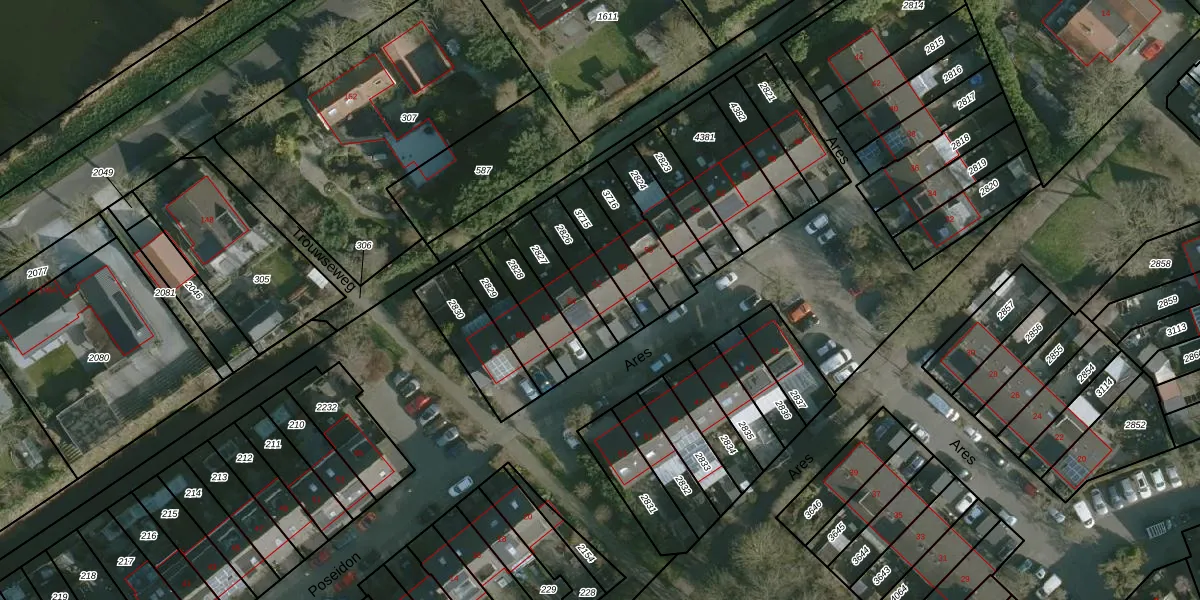 Gebruik de zoekbalk of klik op een perceel voor informatie over de adressen binnen dit perceel.
