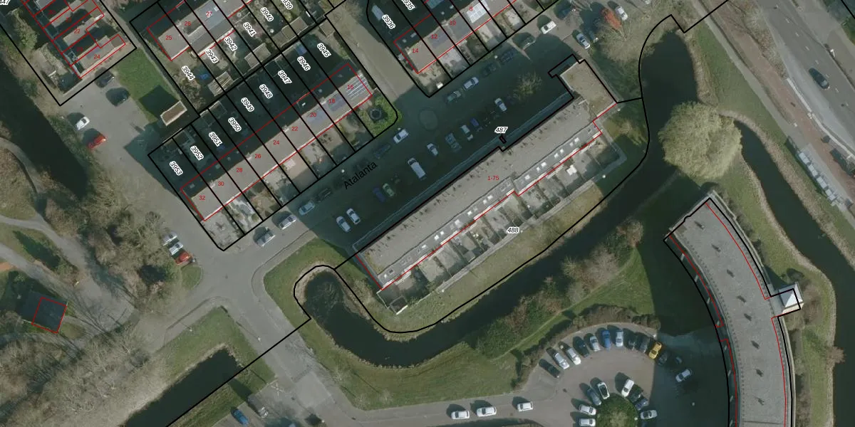 Het perceel waarop Atalanta 33 staat heeft een oppervlakte van 1895 m². Dit is een zeer groot perceel. De perceeloppervlakte wordt geregistreerd door het Kadaster. Gedetailleerde informatie over de maten van dit perceel kunt u vinden in het rapport Kadastrale kaart met maatvoering van Atalanta 33.
