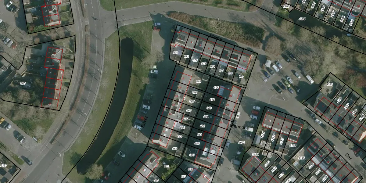 Gebruik de zoekbalk of klik op een perceel voor informatie over de adressen binnen dit perceel.