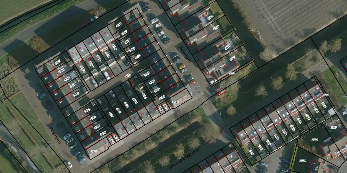 Het perceel waarop Boterkarn 18 staat heeft een oppervlakte van 103 m². Dit is een middelgroot perceel. De perceeloppervlakte wordt geregistreerd door het Kadaster. Gedetailleerde informatie over de maten van dit perceel kunt u vinden in het rapport Kadastrale kaart met maatvoering van Boterkarn 18.