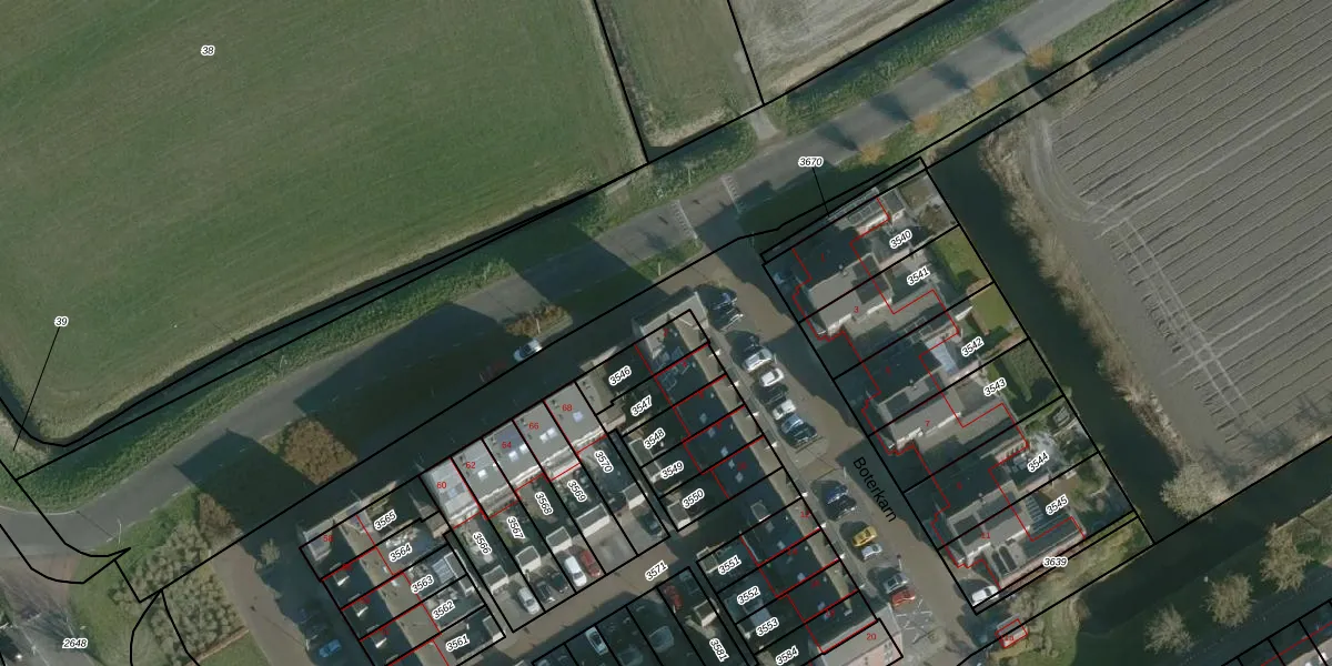 Het perceel waarop Boterkarn 2 staat heeft een oppervlakte van 120 m². Dit is een middelgroot perceel. De perceeloppervlakte wordt geregistreerd door het Kadaster. Gedetailleerde informatie over de maten van dit perceel kunt u vinden in het rapport Kadastrale kaart met maatvoering van Boterkarn 2.