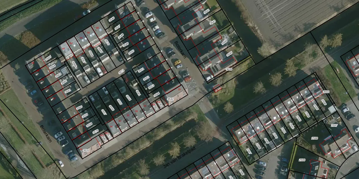 Het perceel waarop Boterkarn 20 staat heeft een oppervlakte van 92 m². Dit is een klein perceel. De perceeloppervlakte wordt geregistreerd door het Kadaster. Gedetailleerde informatie over de maten van dit perceel kunt u vinden in het rapport Kadastrale kaart met maatvoering van Boterkarn 20.