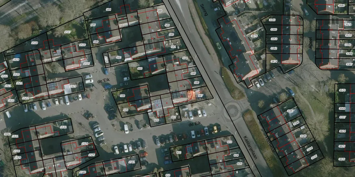 Gebruik de zoekbalk of klik op een perceel voor informatie over de adressen binnen dit perceel.