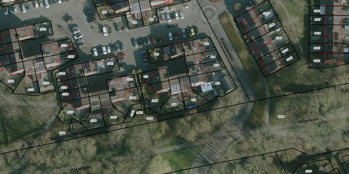 de Eik 13 is gelegen op kadastraal perceel HLV01E608. Deze kadastrale aanduiding is uniek en wordt gebruikt door het Kadaster om eigendomsrechten en andere zakelijke rechten vast te leggen. Het perceel maakt onderdeel uit van de kadastrale gemeente Hellevoetsluis.